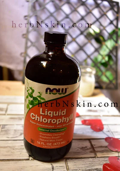 - الكلوروفيل السائل او اليخضور يحتوي على مضادات اكسدة وفيتامينات