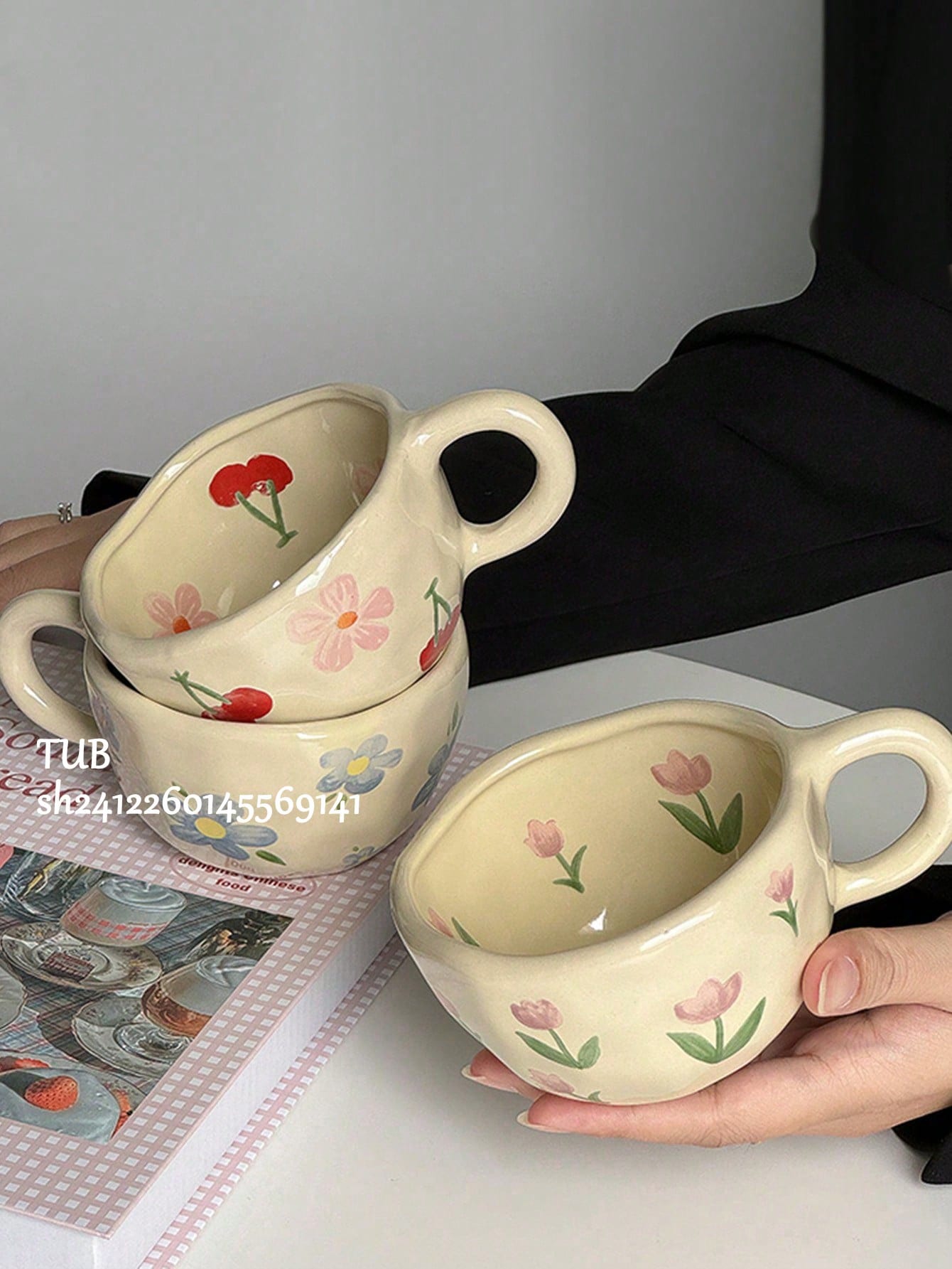 كوب سيراميك رخيص للقهوة من شي انمزخرف بالنقوش الزهرية ،أكواب للأزواج ،كوب إفطار ، لاستخدام المنزل ،ذو قيمة جمالية عالية ،مناسب كهدية للأطفال ،تذكار حفلات 💰السعر‪$5.86‬